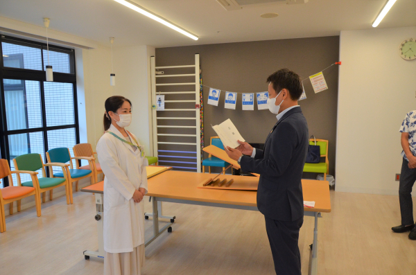 7月7日、住友内科病院内にて贈呈式を行い、院長の住友先生からは感謝状をいただきました