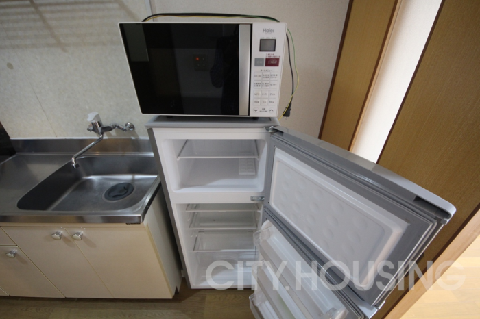 バストイレ別、エアコン[1基]、ベランダバルコニー、ガス調理器具[2ヶ口]、照明器具、給湯[LPガス]、CATV(基本ch)、冷蔵庫、洗濯機、オーブンレンジ、モニタ付インターホン、カーテン、室内物干し、光インターネット[フレッツ光]
