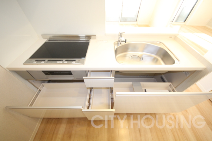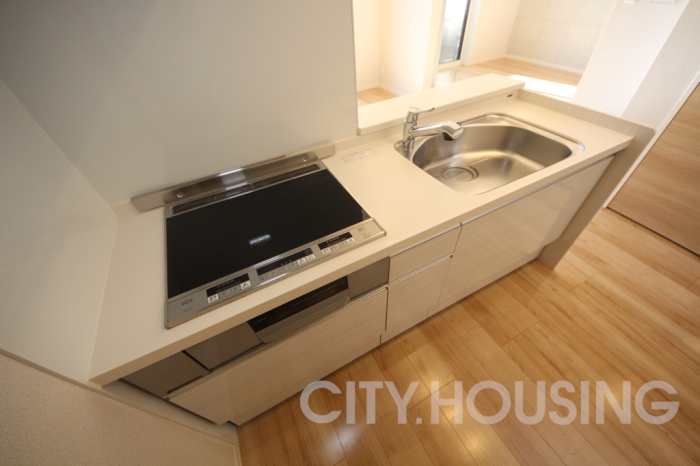 バストイレ別、室内洗濯機置き場、エアコン[2基]、フローリング、南向き、下駄箱、脱衣所、洗髪洗面台、独立洗面台、自動湯はり、追い焚き機能、温水洗浄便座、暖房便座、浴室内乾燥機、システムキッチン、対面式キッチン、給湯[LPガス]、IH調理器具[IH2ヶ口+ラジエントヒーター1ヶ口]、CATV(基本ch)、モニタ付インターホン