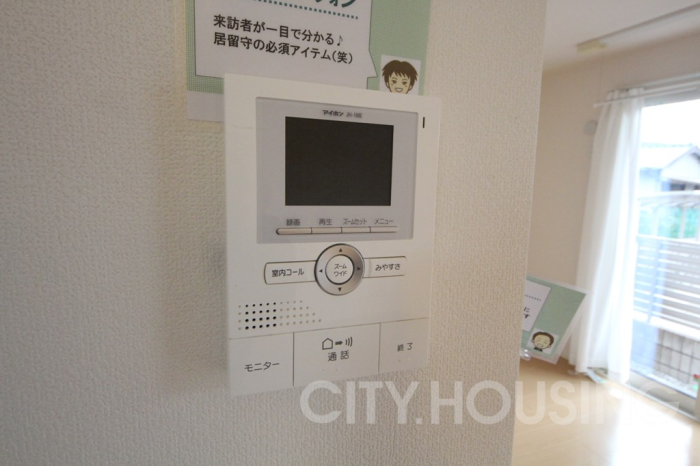 来客確認に便利なモニタ付インターホンが付いていて安心のセキュリティ。