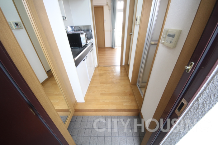 バストイレ別、エアコン[1基]、CATV(基本ch)、フローリング、ベランダバルコニー、下駄箱、温水洗浄便座、ガス調理器具[1ヶ口]、照明器具、給湯[都市ガス(天然ガス)]、洗濯機、電子レンジ、光インターネット[フレッツ光]